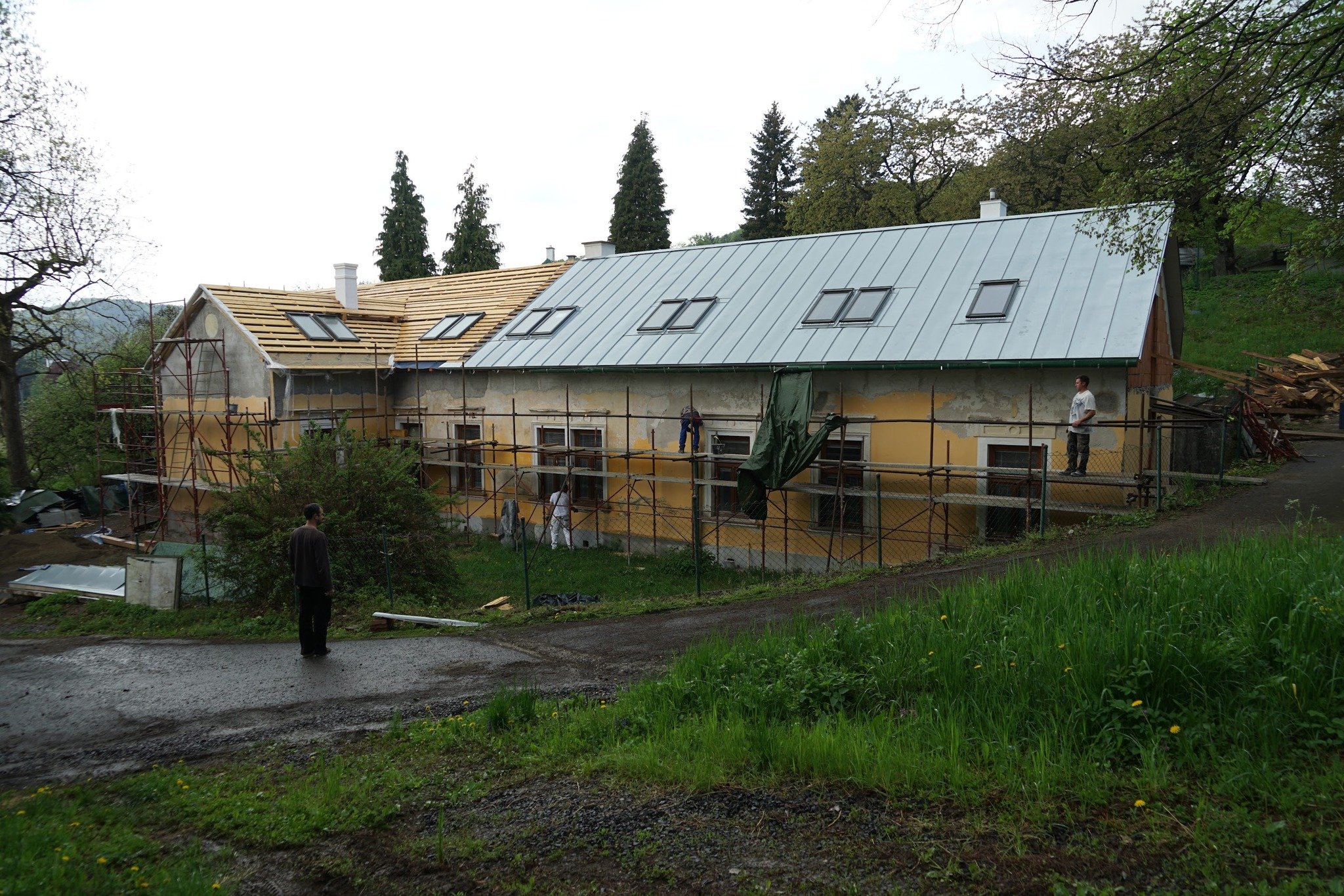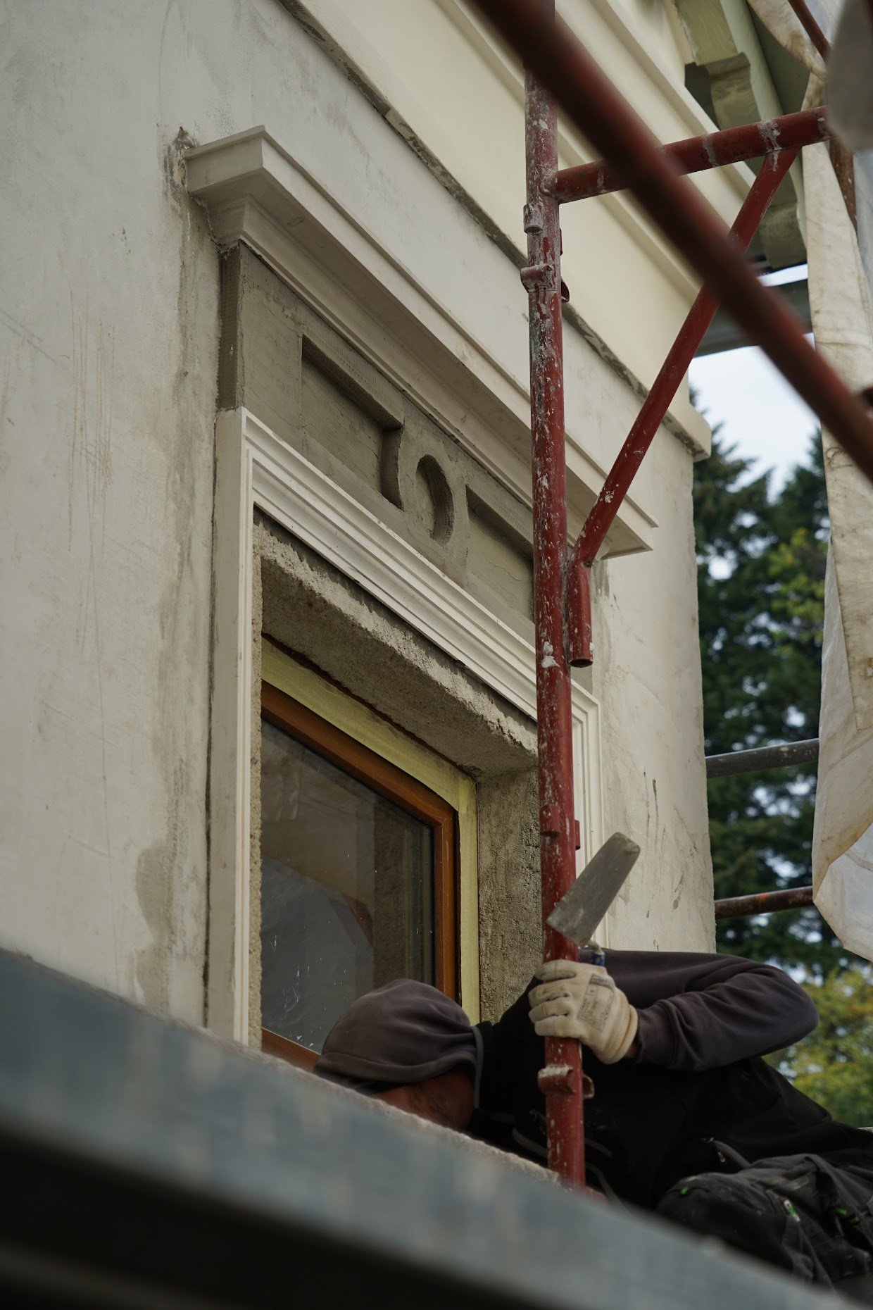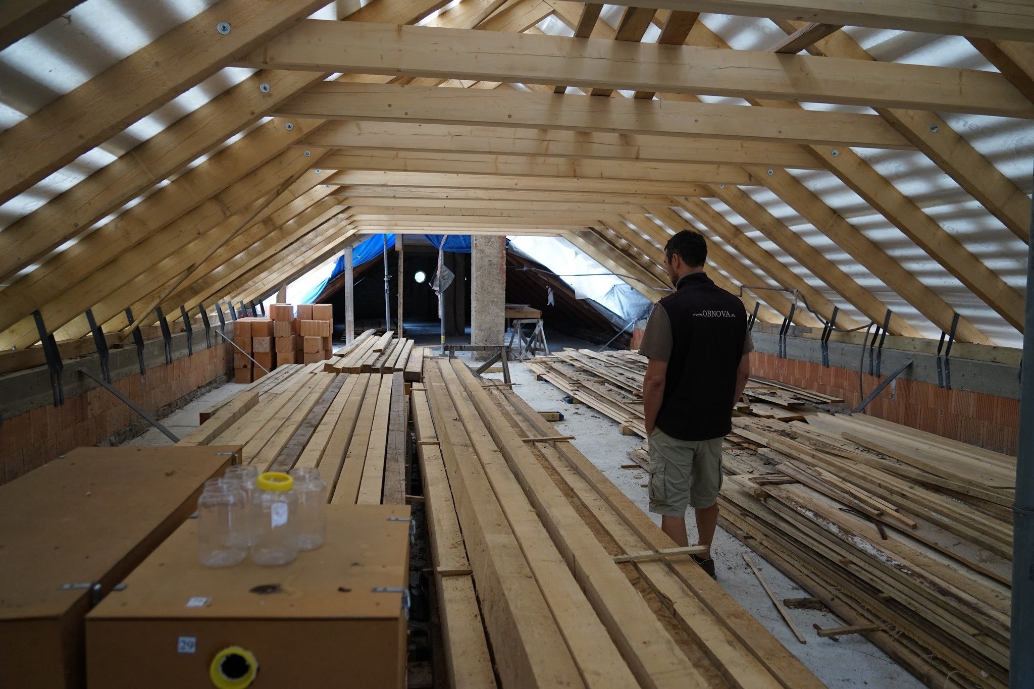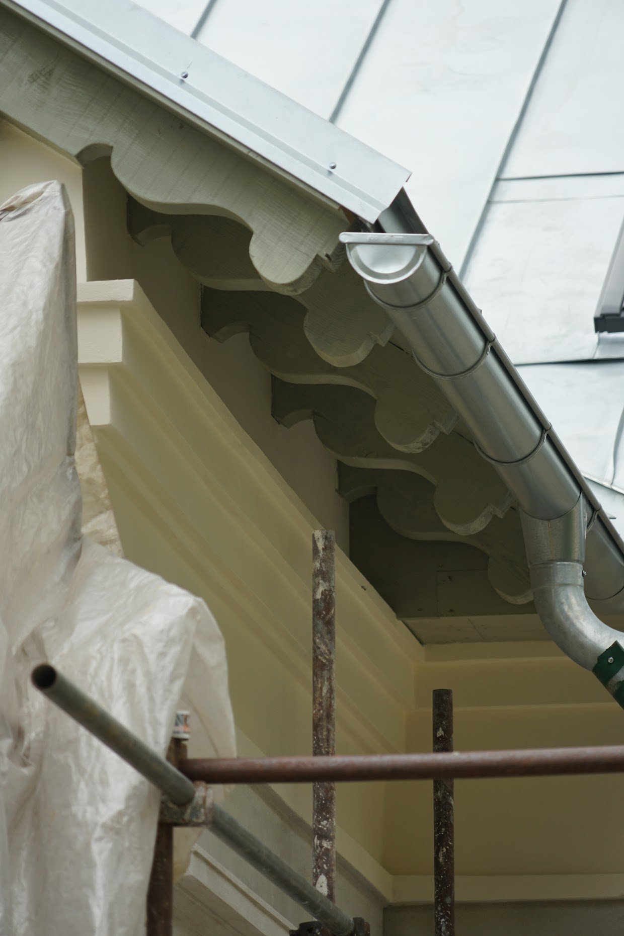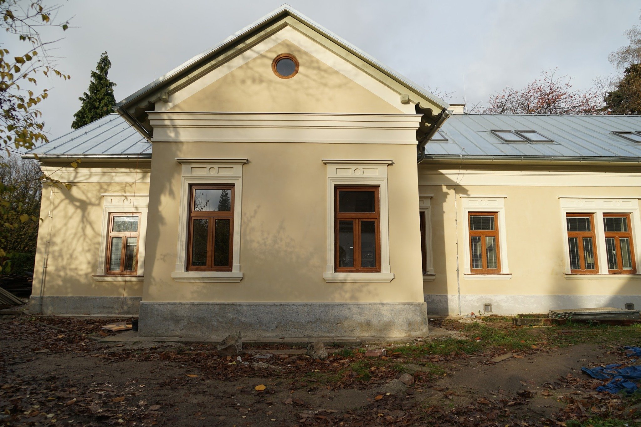 • Pri návrhu a realizácii detailov krovu (dekoratívne ukončenia krokiev) a dopĺňaných drevených konštrukcií, sme sa inšpirovali tradičným tvaroslovím historizujúcej architektúry. A ako inak: obnova bola výbornou príležitosťou ozdraviť objekt od nevhodných zásahov a materiálových riešení, ktorými si prešiel v predchádzajúcich etapách.